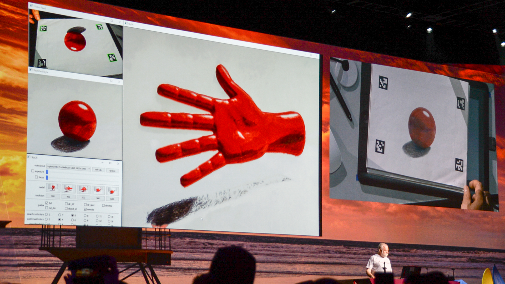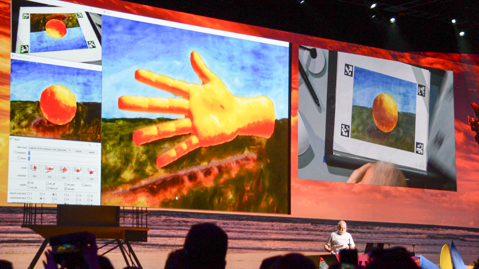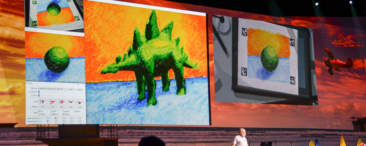 これは静止画だけでなく、アニメーション動画にも適用が可能。1万人がいる会場で拍手喝采に。Stylitは http://stylit.org から試すことができます。ぜひ皆さんもこの技術の凄さを体験しましょう。