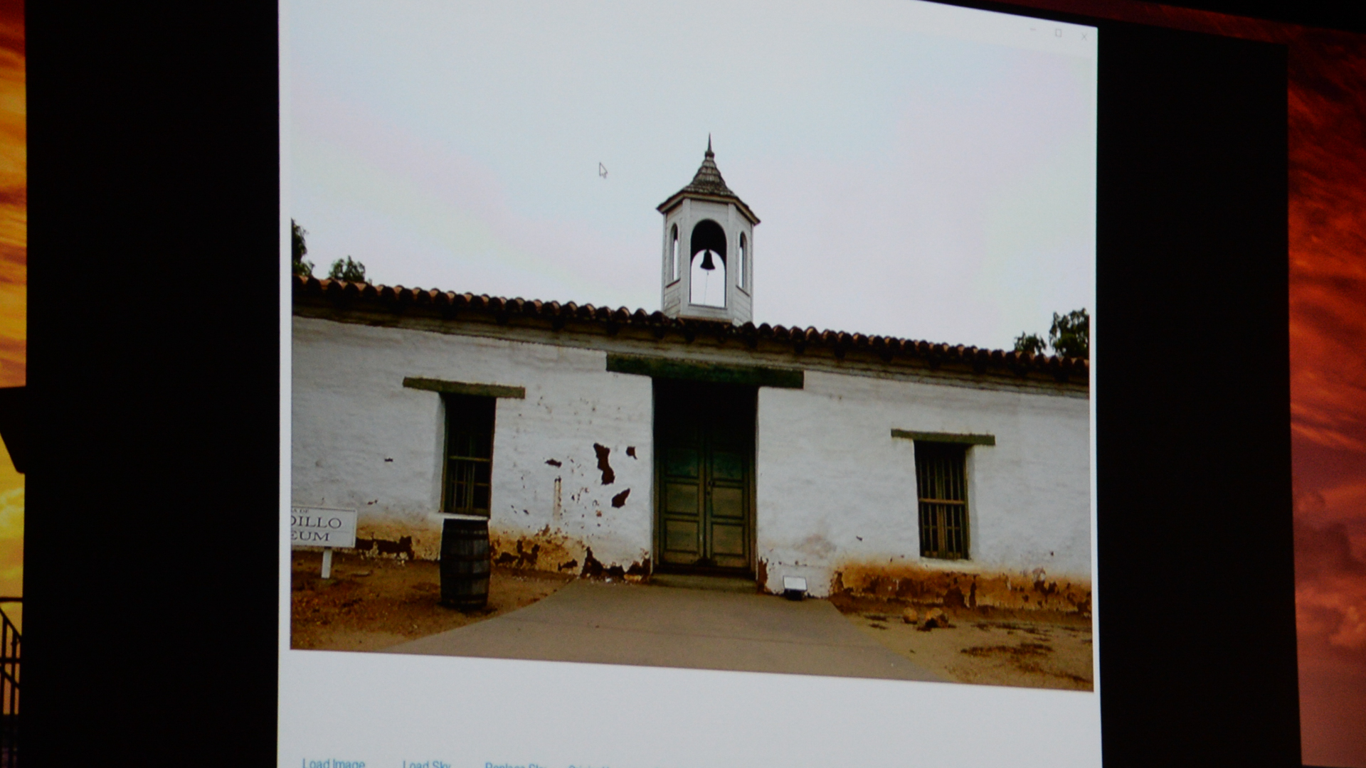 SkyReplaceにより、青空はもちろん、夕焼けも適用できます。建物の壁部分を見るとわかりますが、空のトーンに合わせて建物の壁の光の反射具合も変わっています。