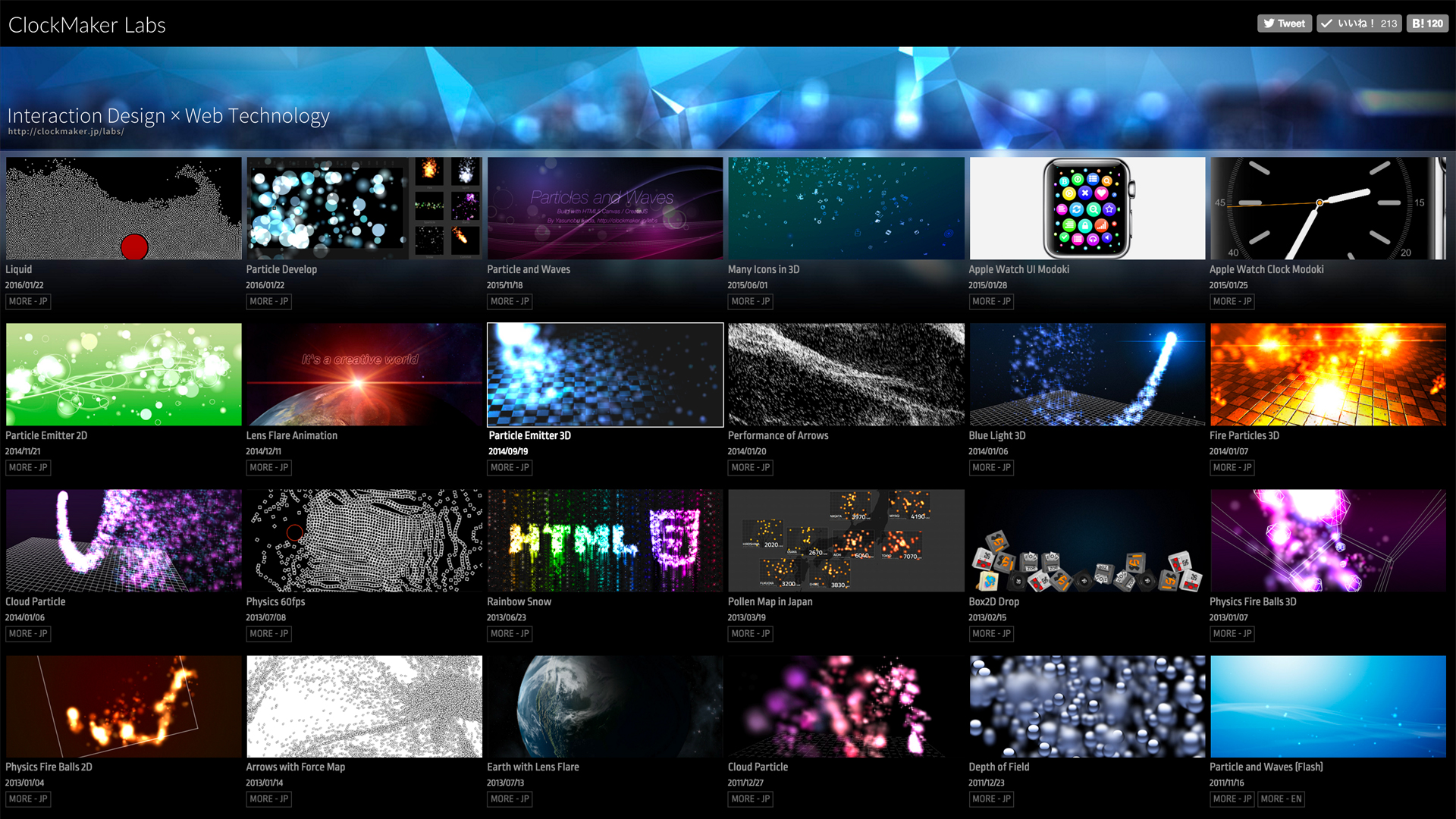 筆者の個人サイト。2008年頃から制作してきた実験的なインタラクションコンテンツを掲載しています。サイトはAngularで構築し、演出にshuffle-textを利用しています。サイトのソースコードはGitHubで公開しています。