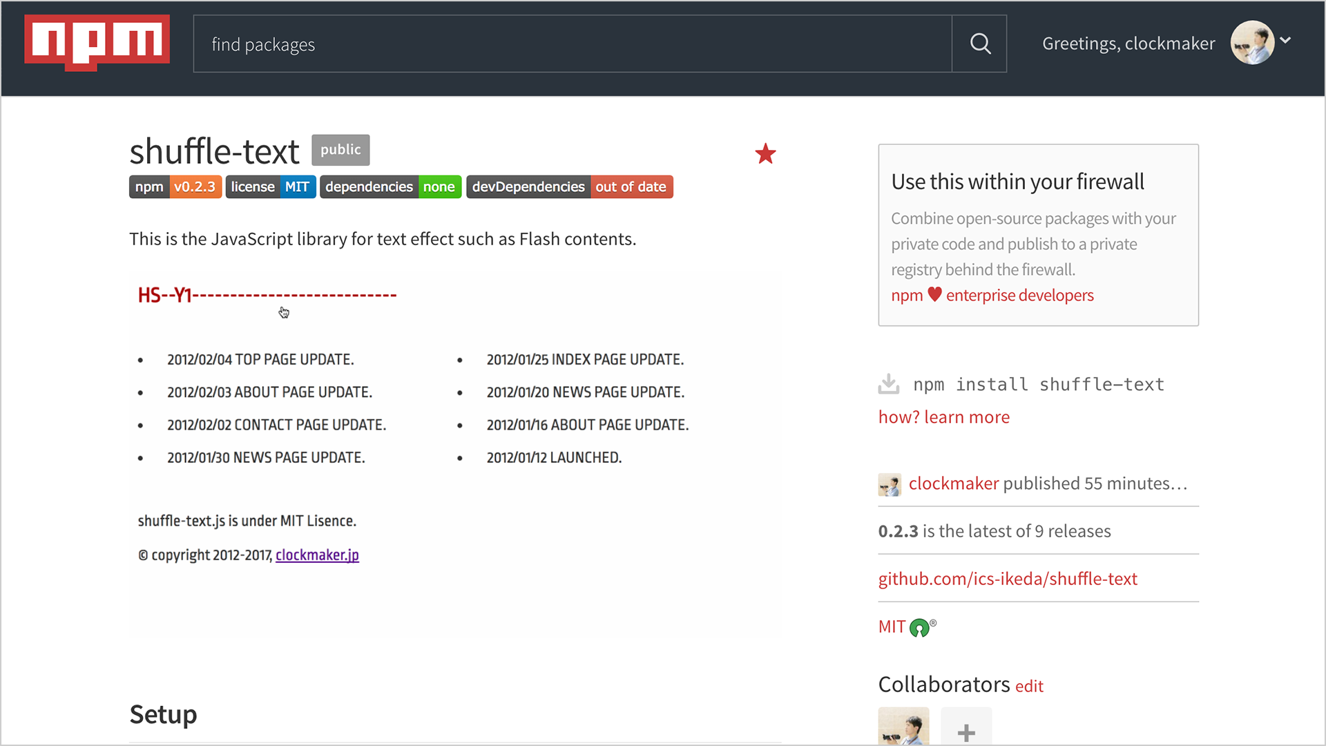 shuffle-textはnpmでも公開しています。フロントエンドエンジニアはこちらから利用するのがいいでしょう。