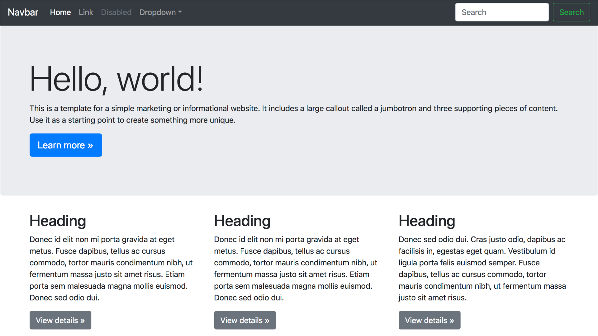 先述のミニマムな構成だと、Boostrapを組み込むメリットが少なく、CDNとして提供されている公式URLを取り込んだほうが手軽ではないかと読者の皆さんは思うはずです。