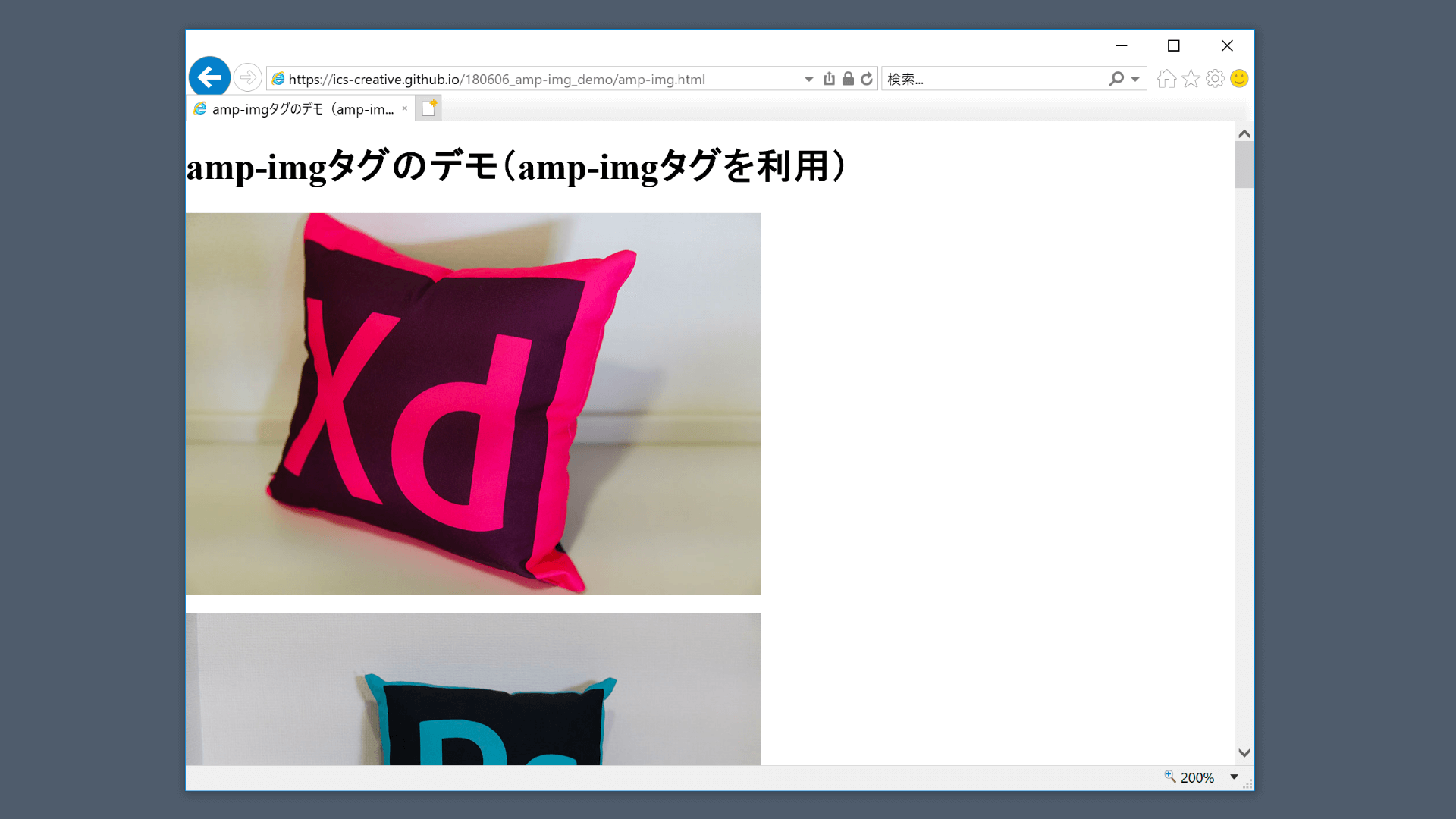 layout属性にresponsiveを指定すると、親のコンテナー要素の幅にあわせて表示されるため、元画像よりも大きく表示されてしまう。その場合は、親のコンテナー要素にCSSでmax-widthを指定するなどの必要がある - AMP JSのライブラリー「v0.js」の容量がGZIPで80KBほどあり、JSファイルの解析時間がわずかにかかってしまう。