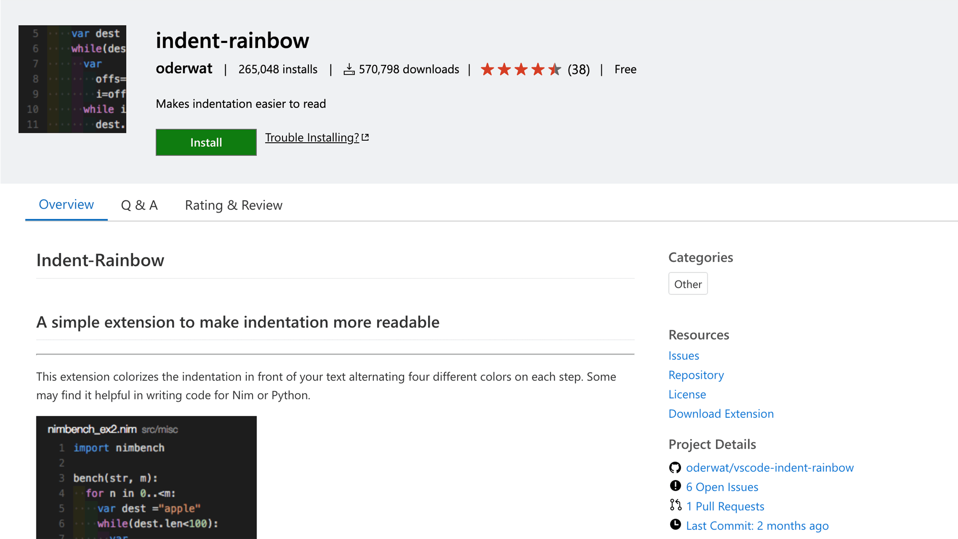 「indent-rainbow」は深さに応じて、インデントをカラーリングするプラグイン。インデントの深さが視覚でわかりやすくなるので、かなりコードが書きやすくなります。JavaScriptやHTML、CSSで利用可能です。