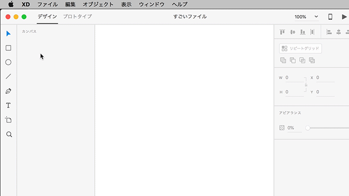 XDがPSDファイルに対応しているため、「ファイル」>「開く」からPSDファイルを選択するだけでOKです。またmacOSの場合は、PSDファイルを直接XDにドラッグ&ドロップでも開けます。